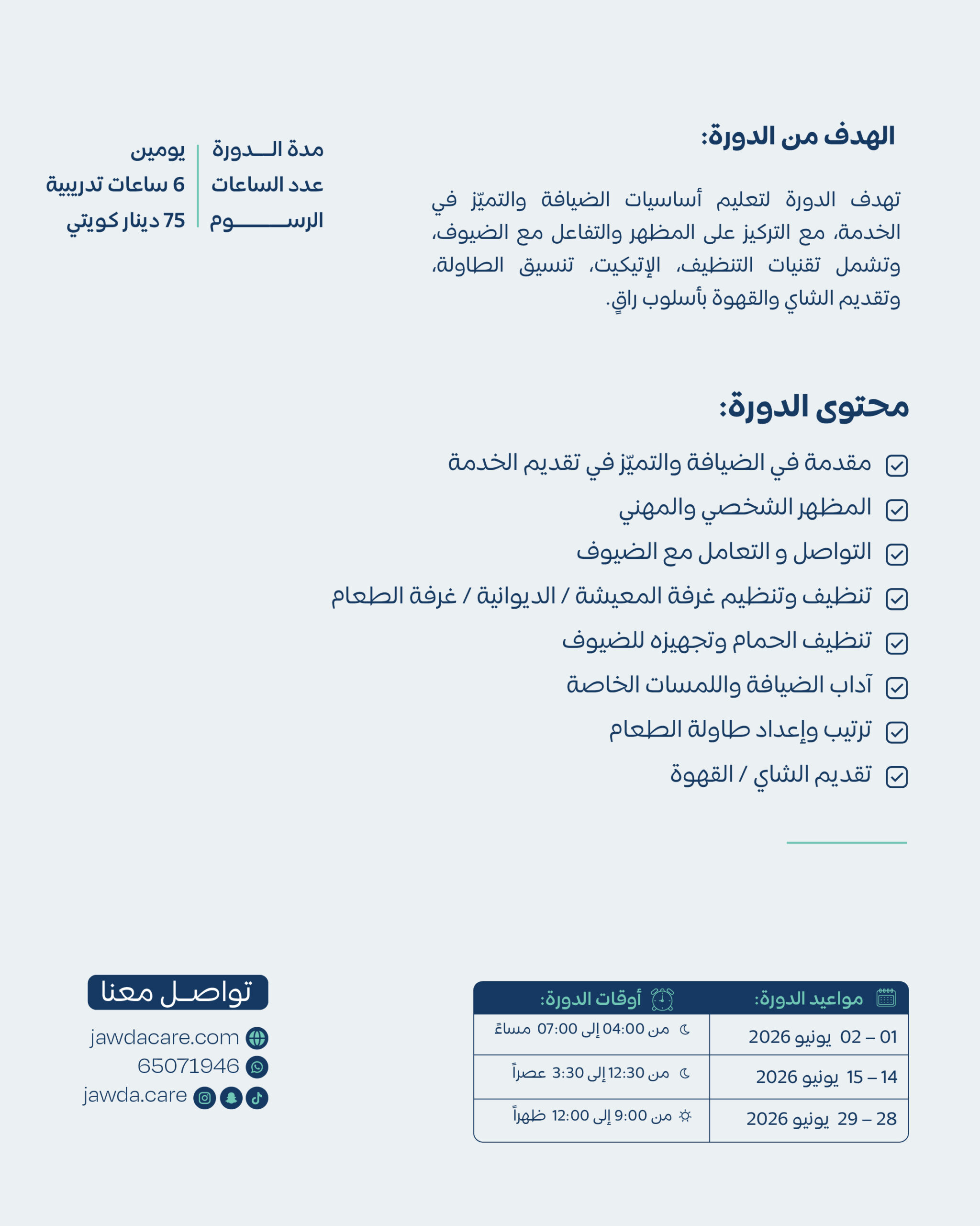 Hospitality Services Trainingخدمات الضيافة
