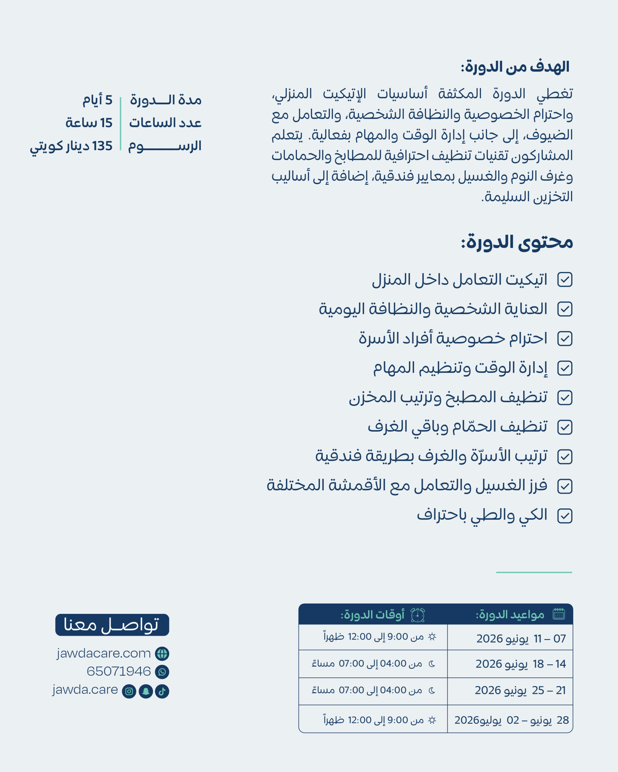 Housekeeping Mini Courseالتدبير المنزلي - الدورة المكثفة