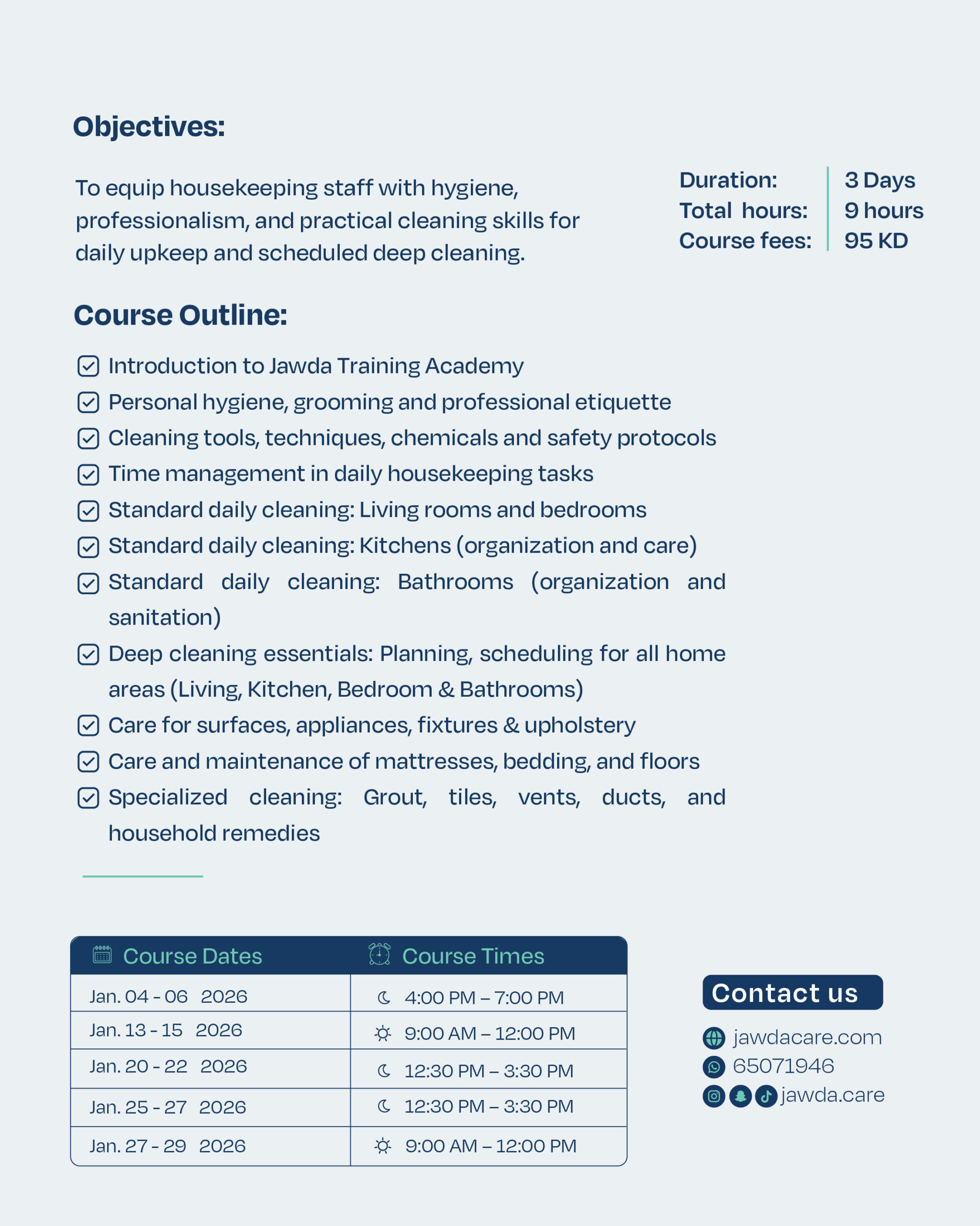 | Select Schedule | January 13 – 15, 2026 – 9:00 AM to 12:00 PM, January 20 – 22, 2026 – 12:30 PM to 3:30 PM, January 25 – 27, 2026 – 12:30 PM to 3:30 PM, January 27 – 29, 2026 – 9:00 AM to 12:00 PM |
